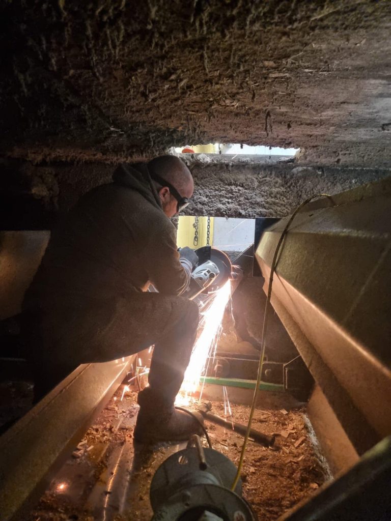 Here’s a few photos of some of our recent jobs where we carried out repair welding to a wood chipper infeed, exchanged a return shaft on a large conveyor, and exchanged a drive gearbox where access was tight.